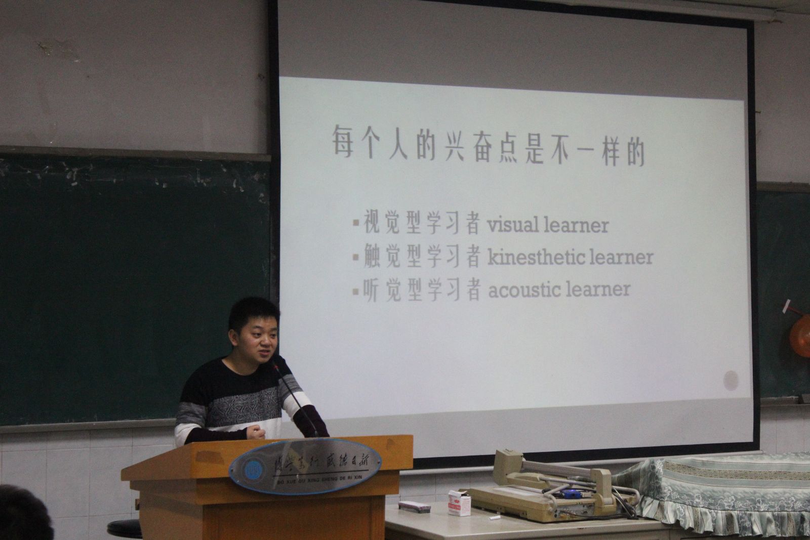 在热烈的掌声之后,肖亮学长走上讲台,主要就他自己的英语学习经验给全体伟德BETVLCTOR的同学们提出了许多建议,学习英语需要四个要点——时间、复习、兴趣和方法。时间与英语水平是成正比的,定时复习是巩固掌握外语的必要条件,兴趣是支持学习的动力,学习外语必须要有正确有效的方法。同时肖亮学长给大家推荐了一些英语学习网站和方法,对大家在四级考试中的各种题型提出一些必要的建议和答题技巧。
