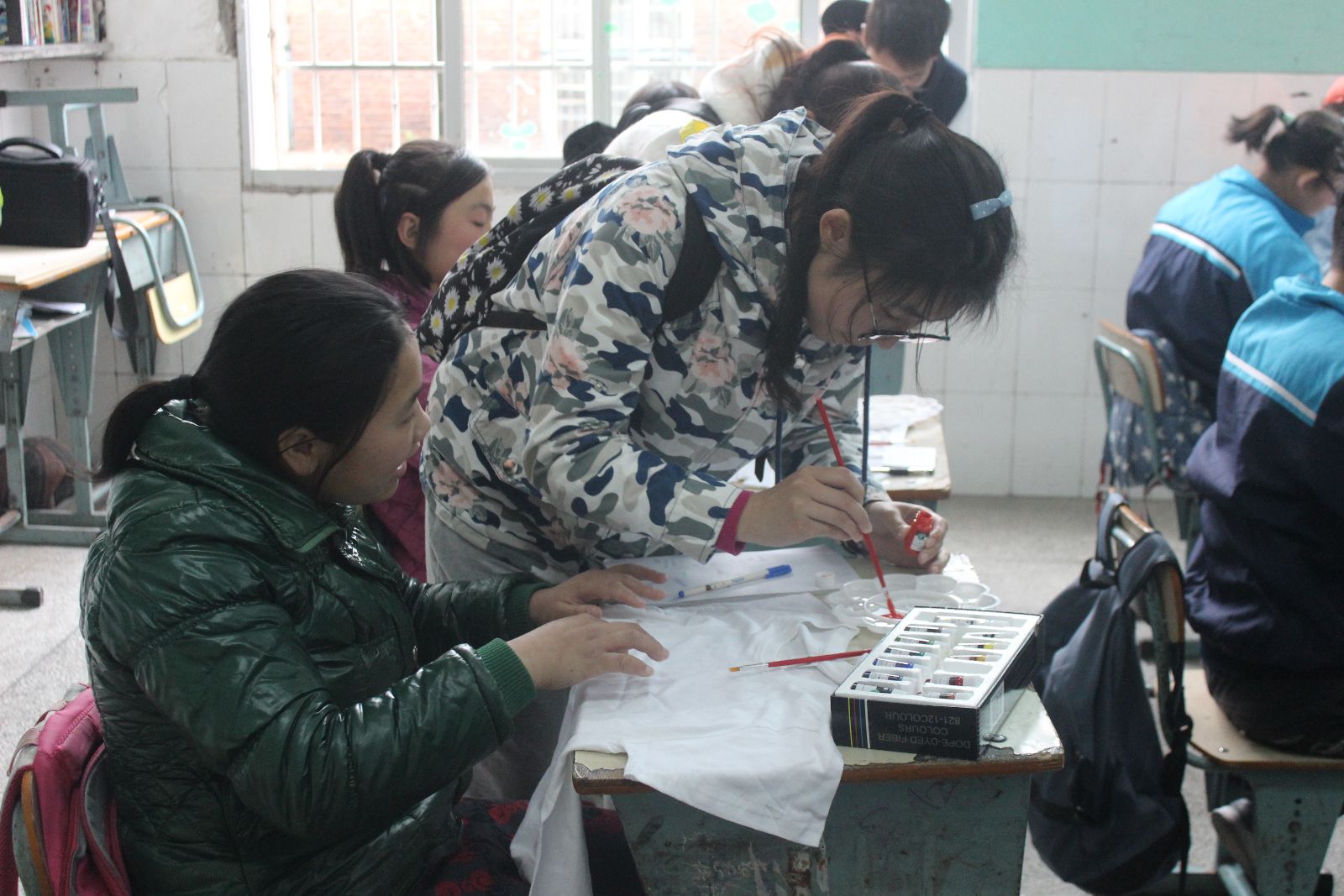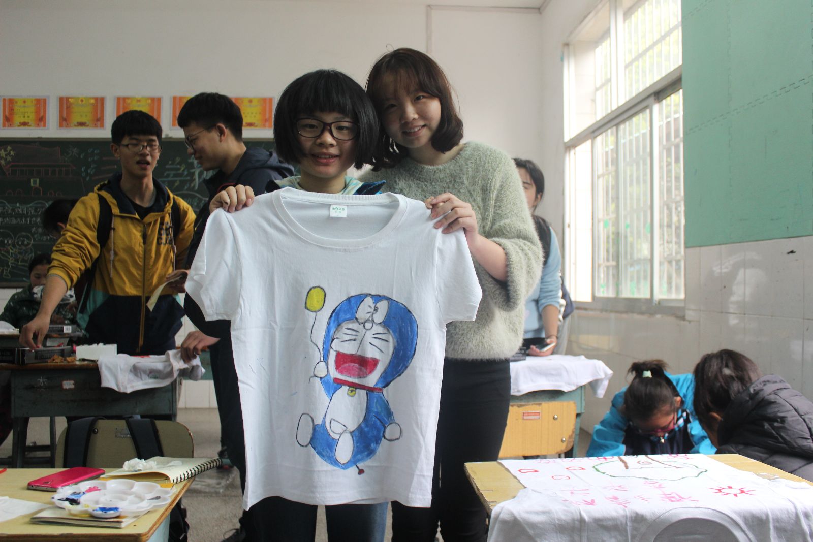 此次活动去到的是特殊教育学校启音部的39班。39班的班主任为小同学们介绍志愿者的来意之后,他们都报以热烈的掌声和可爱的笑容。活动的内容是手绘T恤,每个志愿者陪伴一个小朋友手绘一件T恤。活动过程中,志愿者和小朋友用纸笔交流,一起在T恤上绘出了可爱的图案,每个人脸上都洋溢着灿烂的笑容。