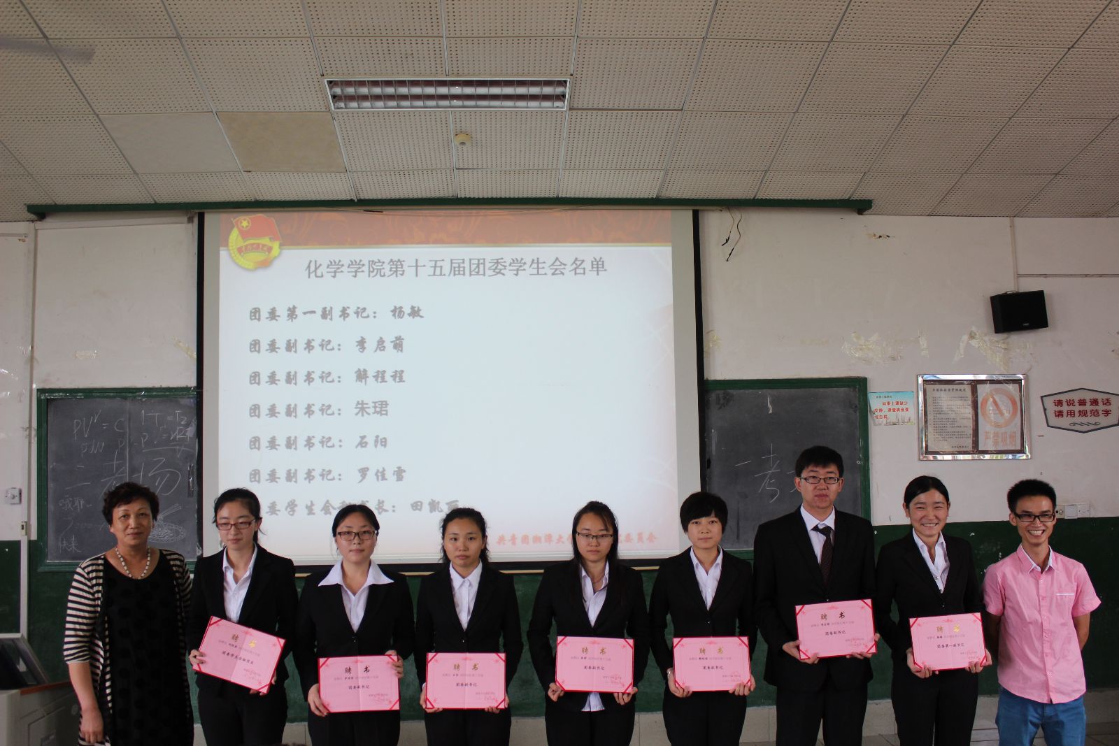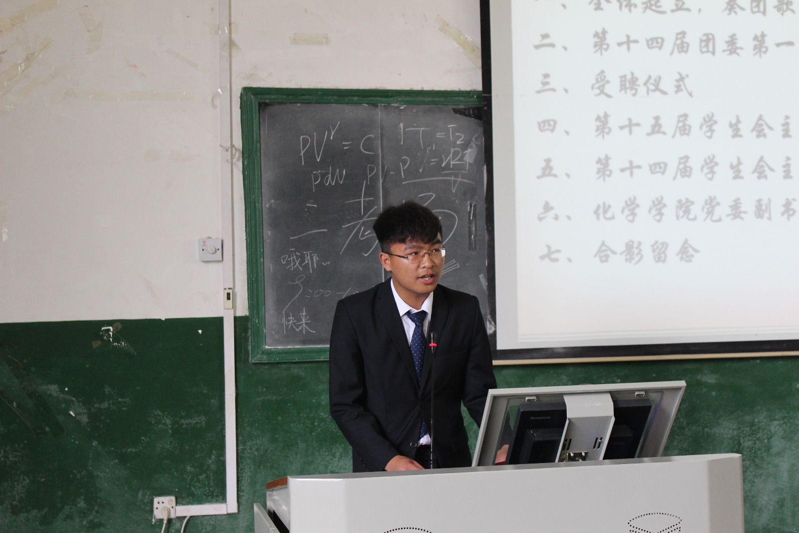 在全体起立奏团歌后,第十四届团委第一副书记刘玲君进行了工作报告,总结了一年以来团委学生会获得的成绩,也对未来做出了展望。大会第三项是受聘仪式,由嘉宾们为主席团成员和部长级成员颁发聘书。接下来,第十五届学生会主席谢为发言,告诉大家要树立良好心态,将学生会建设得越来越好。继谢为发言之后,由第十四届团委学生会主席李伟健讲话,表达了对过去一年工作的肯定并祝愿学生会在今后的表现中更加优秀。之后,卢其斌老师表达了对学生会的三点期许与嘱托,令大家受益匪浅。大会最后,周计老师进行总结发言。大会结束后,学生会全体成员在铜像广场前合影留念。