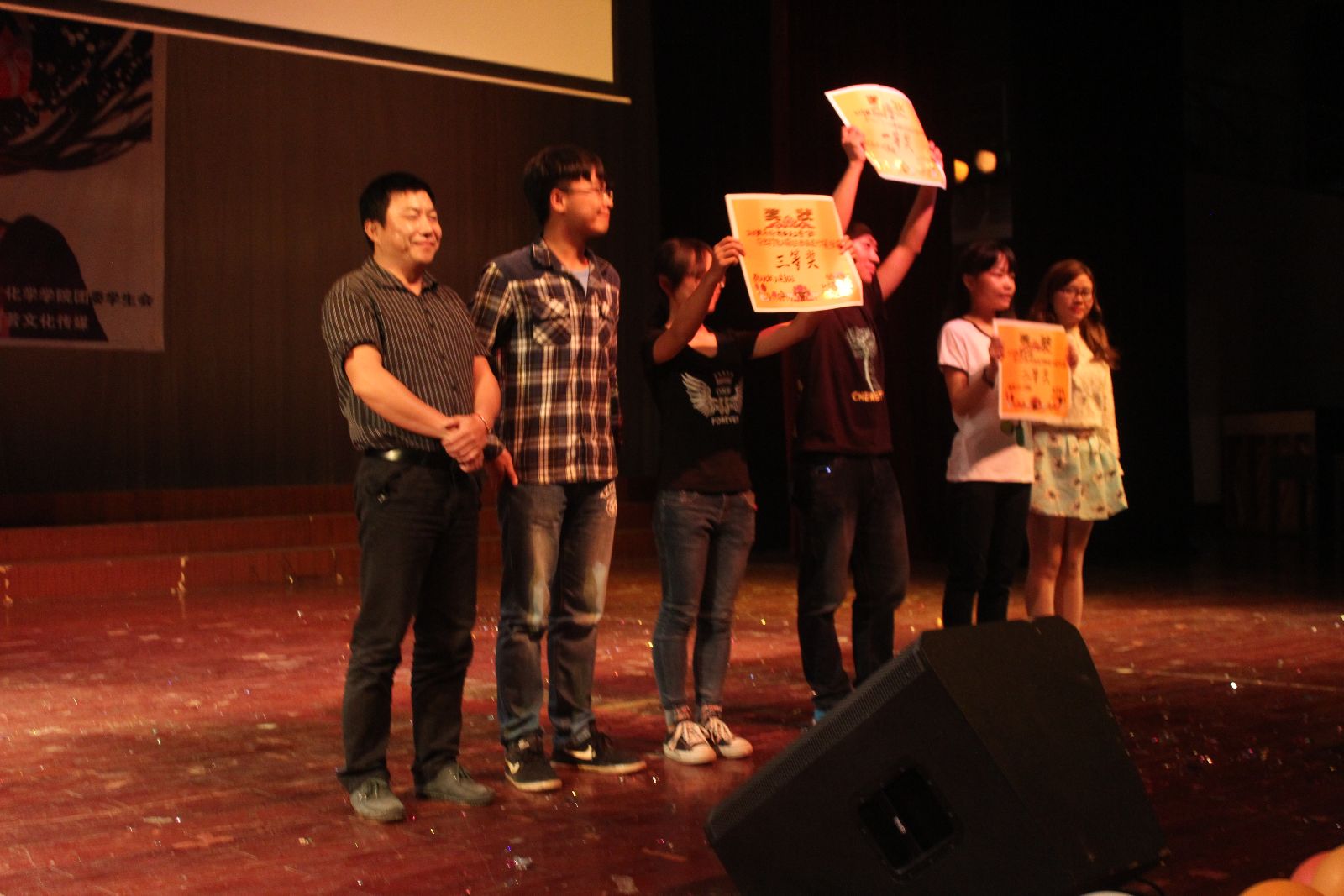 在高分子材料与工程专业的表演——《舞蹈串烧》结束后,主持人公布最后一轮得分,随后举行颁奖典礼。在本次比赛中,材料化学二班荣获冠军,应用化学一班、化学一班分别获得最佳创意奖、最佳人气奖。大赛在观众热烈的掌声中拉上帷幕。