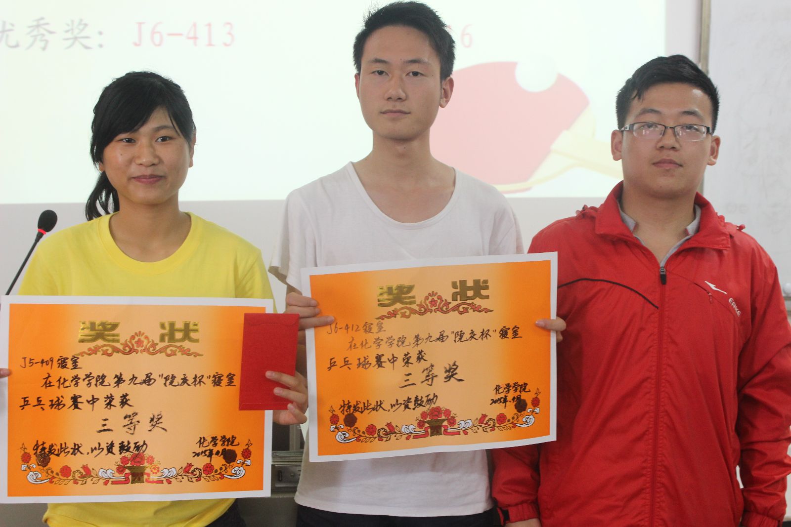 2015年4月28日中午12点30分,由生活部举办的伟德BETVLCTOR寝室乒乓球比赛颁奖仪式在化学化工大楼A417教室顺利举行。到场的嘉宾有伟德BETVLCTOR团委书记周计、团委副书记谢凌超、副主席李娇、主席团成员蒋守鑫,获奖寝室成员代表和优秀裁判,以及生活部成员。