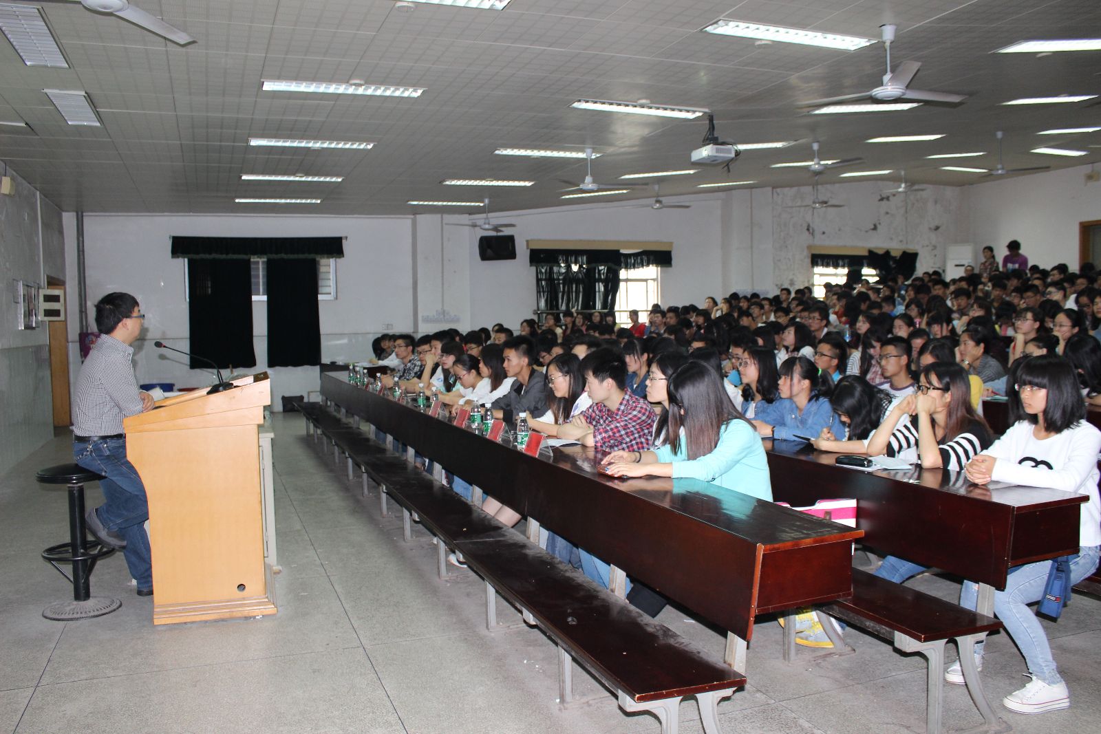 8点50,全体同学都有序的进入了场地等待团课开讲。待一切工作准备就绪之后,本次团课的主持人宣布开始并请伟德BETVLCTOR团委书记周计老师进行授课。授课内容的主题是修炼,周计老师回顾了2014年里对同学们的印象,指出了同学们的优缺点,并发表了关于同学们的专业以及未来职业的个人见解。与此同时,周计老师还希望同学们在学好专业的同时,对其它知识也尽可能的去涉略和掌握。同学们都听的很认真,眼睛一直专注周老师,有的还做好了笔记。