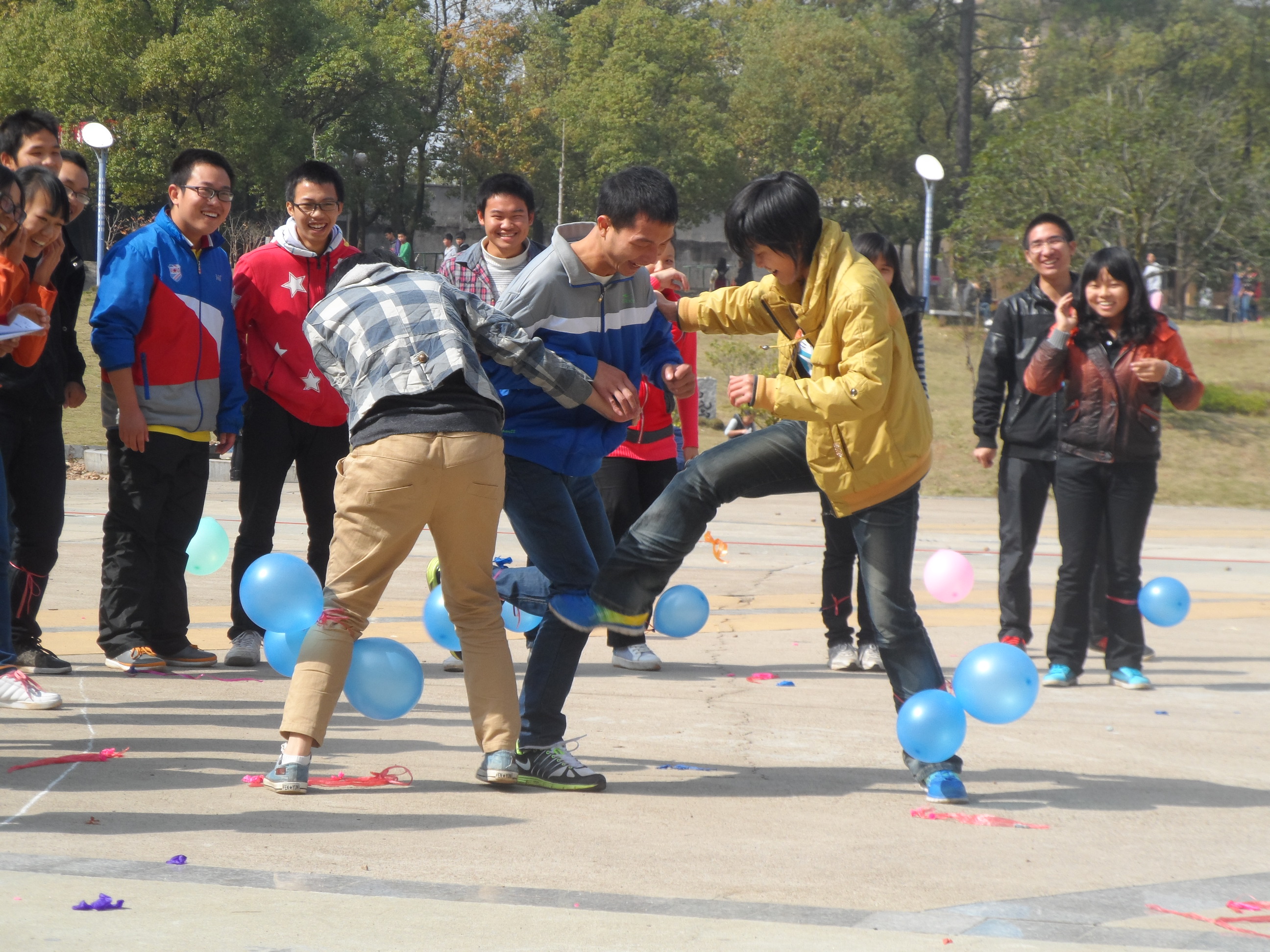 这次素质拓展活动由伟德BETVLCTOR团委学生会组织部主持展开。整个活动中都洋溢着轻松欢快的气氛。在同学们的热切期盼中,开始了第一项活动――椅子“渡河”。这项活动看似简单,实则既需要体力又考验速度和技巧。各班参赛同学都尽自己最大的努力争取在最短的时间内到达“河对岸”。大家争先恐后,紧张不断,精彩不断。场上的比赛紧张刺激,未参赛的同学也在看台上为比赛的同学加油鼓劲,热烈的呼喊声充斥着一田的每一个角落。之后又相继进行了“七手八脚”“三人四足”“踩气球”等一些经典有趣的游戏。最后每个人都带着愉快的心情离开了田径场。