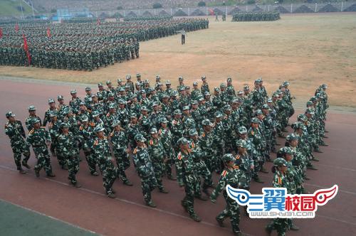 10月5日上午八点三十分,全体2012级新生在第二田径场接受阅兵考核。