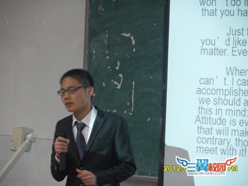 2012年4月8日14:30,伟德BETVLCTOR英语演讲比赛决赛在经管楼一阶顺利举行。此次比赛的评委有新航道的Risk老师,以及三位学生评委:高琼,陈仪,何俊。伟德BETVLCTOR团委学生会主席团部分成员也观看了此次比赛。