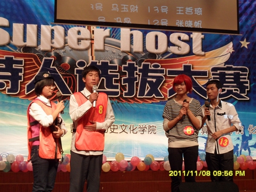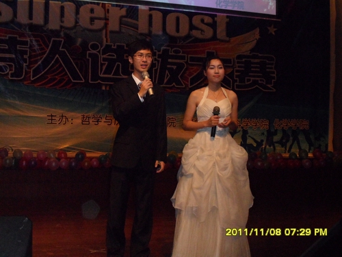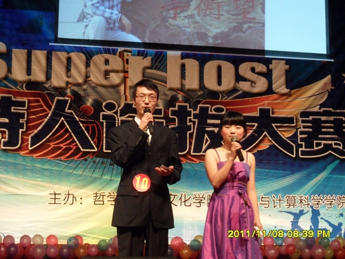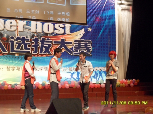 经过初赛激烈的竞争,共有15位优秀选手晋级决赛,其中有五位来自伟德BETVLCTOR。比赛共分为三个部分,分别是自我介绍,模拟主持,才艺表演。其中自我介绍以别开生面的DV形式展出,与模拟主持同时进行。比赛全程精彩纷呈,才艺表演环节更是高潮迭起。由哲学与历史文化学院的四位同学带来的歌舞剧《浅唱当时》,让人回忆起一段昔日的爱情,甜蜜而又忧伤。伟德BETVLCTOR与数学与计算科学学院合作的相声剧《还钱》,幽默风趣,让观众捧腹大笑,掌声不断。另外,其余选手充满激情与活力的才艺展示也为比赛带来了不少亮点。