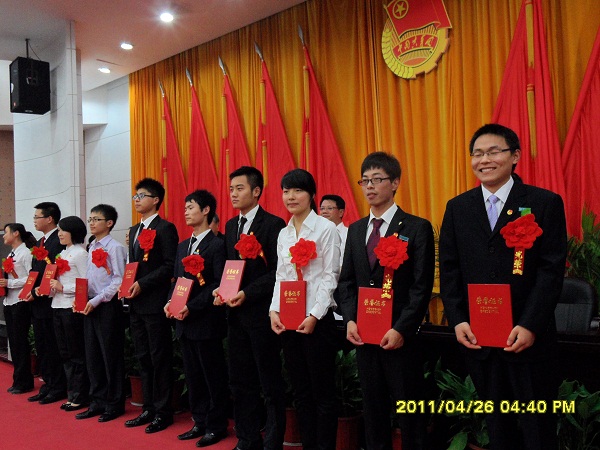 在本次表彰中伟德BETVLCTOR多个团体和个人获奖,成绩斐然。副院长黎华明和退休教师曾强荣获”关心共青团工作育才奖“,团委书记周计荣获“优秀专职团干部”,2008级化学1班梅清清荣获“十佳大学生”奖,团委第一副书记杨婷荣获“十佳学生团干部 ”奖,2009级应用化学2班获“团支部工作特色奖”,院团委学通部荣获“共青团先进信息工作奖”,2008应用化学2班、2009材料化学1班,2009药学2班和2010级应用化学1班获得了“百佳团支部”奖。