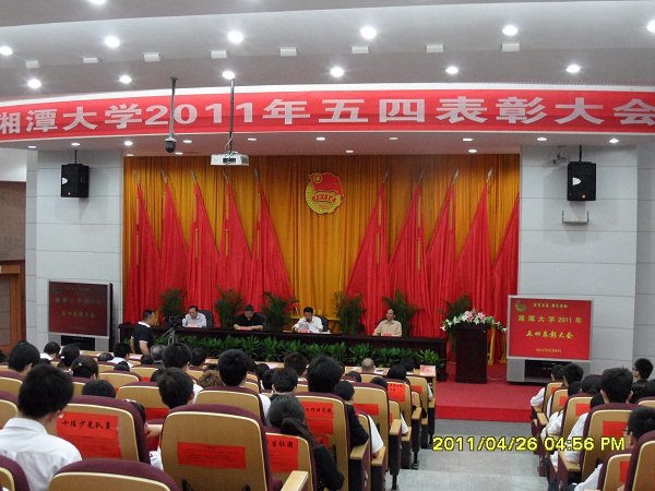 4月26日下午,我校纪念五四运动92周年暨2011年五四表彰大会在逸夫楼报告厅隆重召开。校党委书记肖国安、副校长黄云清、校党委副书记李伯超、总会计师刘长青出席,2011年度共青团工作获奖集体和个人代表以及机关有关单位负责人、各学院党委副书记、分团委书记、青年学生代表共500余人参加。大会由李伯超主持。校党委副书记主持会议。表彰大会在嘹亮的团歌声中拉开帷幕。校团委书记肖志伟首先介绍了伟德BETVLCTOR2010年度团学工作在各方面所取得的骄傲喜人的成绩,之后,副校长黄云清宣读了2011年五四表彰文件及主要获奖名单。接下来举行了隆重的颁奖仪式,主席台就座的领导分别为获奖的团体和个人代表颁发了“五四红旗团委”,“团支部工作特色奖”、“十佳学生社团”,“关心共青团工作育才奖”、“优秀专(兼)职团干”、“十佳大学生”、“十佳学生团干部”和“十佳少先队员”等奖项。颁奖后,老师代表人事处副处长王广林老师学和生代表王志鹏分别进行了发言,与大家畅谈感受和方法经历。