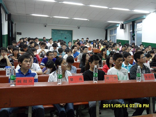 首先,院长朱卫国老师从自身学习经历等来谈考研的重要性和对我们今后工作的意义,让大家对考研有了更深刻:的理解。随后,副院长王学业老师发言,他从全国的考验政策、趋势和各学校的考研指标分配着手,给大家分析了具体的考研技巧和学校选择方法,使大家豁然开朗。