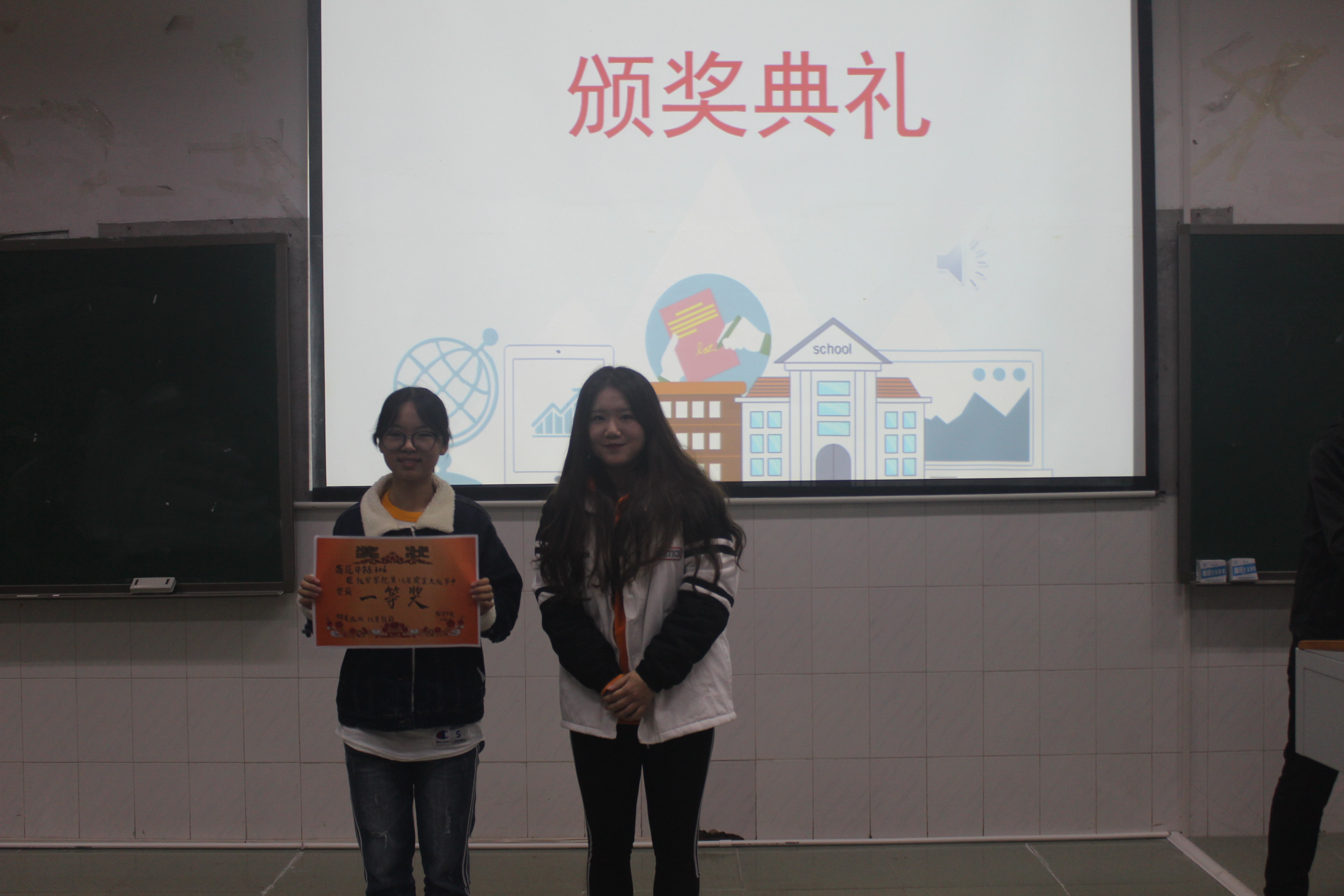 (严画老师颁发一等奖)