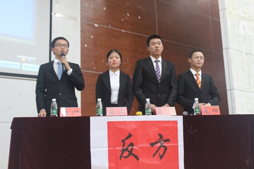 严画老师致开幕词时指出:辩论赛作为一种传统的文化节目,是引导同学们提高自身的道德修养,丰富文化内涵,增强独立意识等基本素质的有利途径。希望同学们可以在未来的学习生活中能运用这次辩论赛所带来的知识与能力,更进一步。随后在热烈的掌声中此次辩论赛的主席登场,简单的介绍了经过一个多月的小组赛与半决赛脱颖而出的两支队伍:应用化学二班与材料化学一班辩论队。辩手登台后辩论赛正式开始。正方应化二班辩题是“顺从世界,会过得更好”与反方材化一班辩题是“顺从世界,不会过得更好”。