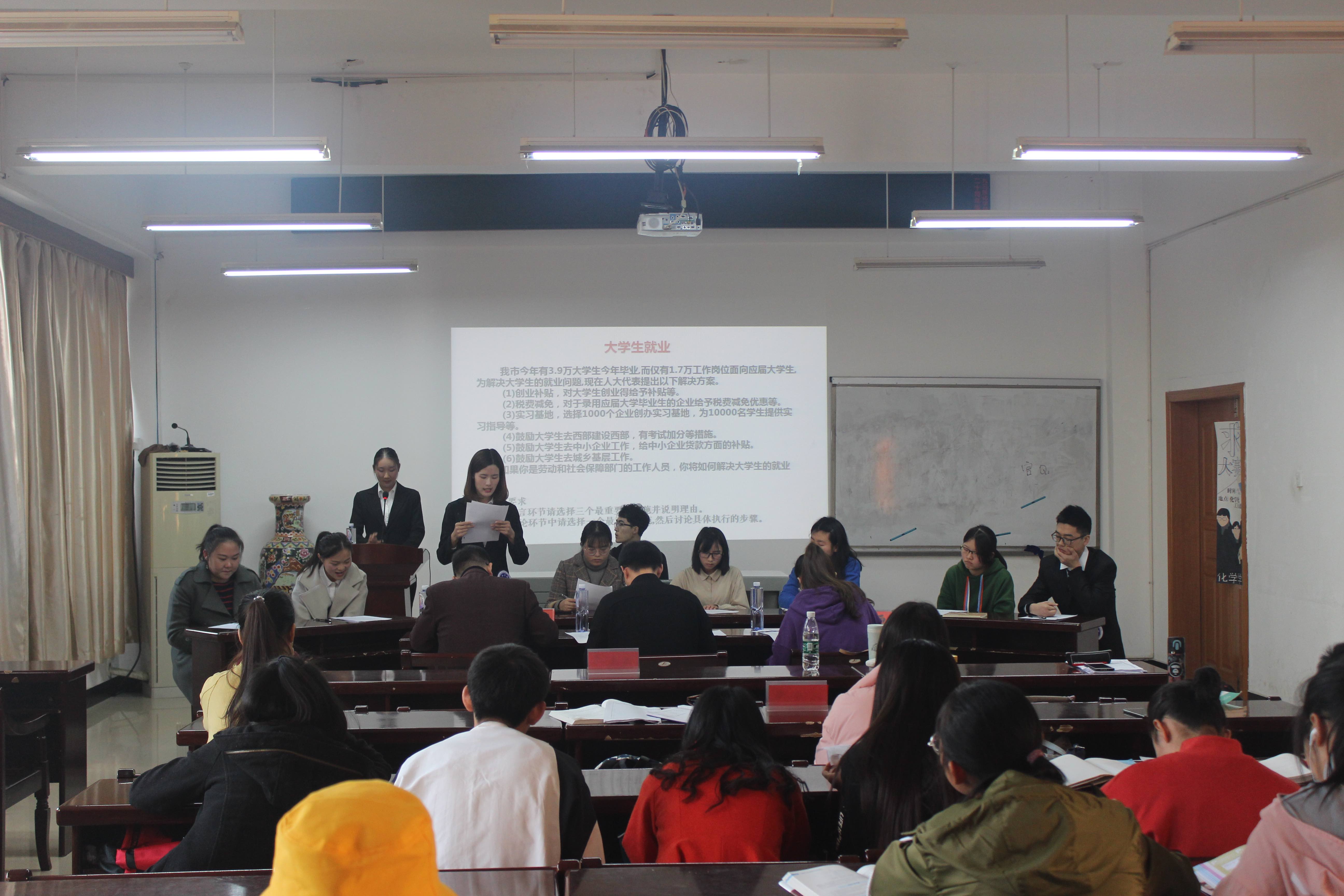比赛的第二环节为无领导小组讨论。在以大学生就业为议题的无领导讨论中,8位晋级选手各抒己见,通过激烈的团队讨论和精彩的团队协作,给了各考官一份满意的答卷。各评委老师也给出了相应的意见,令参赛选手们获益匪浅。