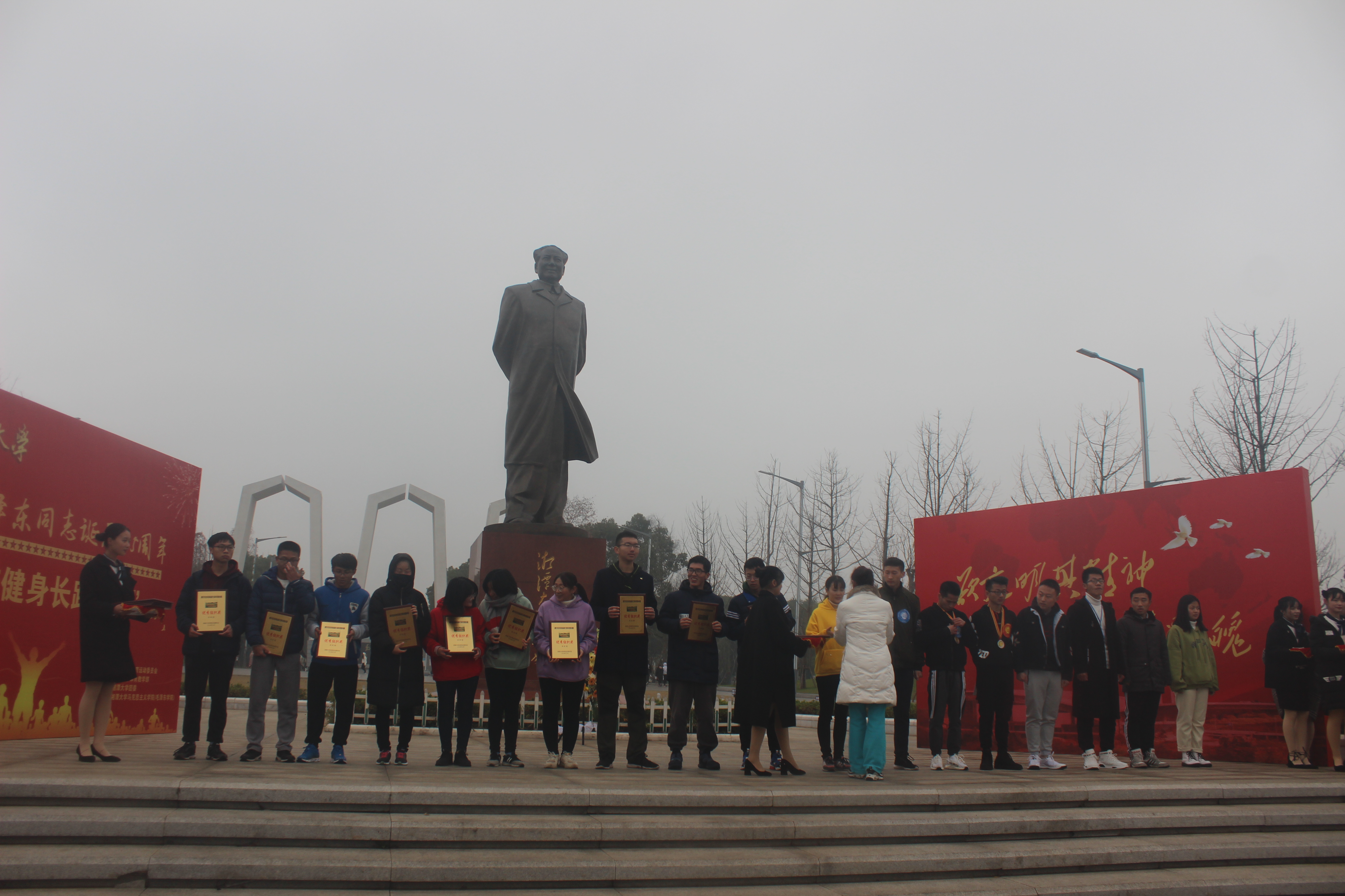 12月25日下午14:20,伟德BETVLCTOR纪念毛泽东同志诞辰125周年环校健身长跑赛开幕式在二田顺利举行。