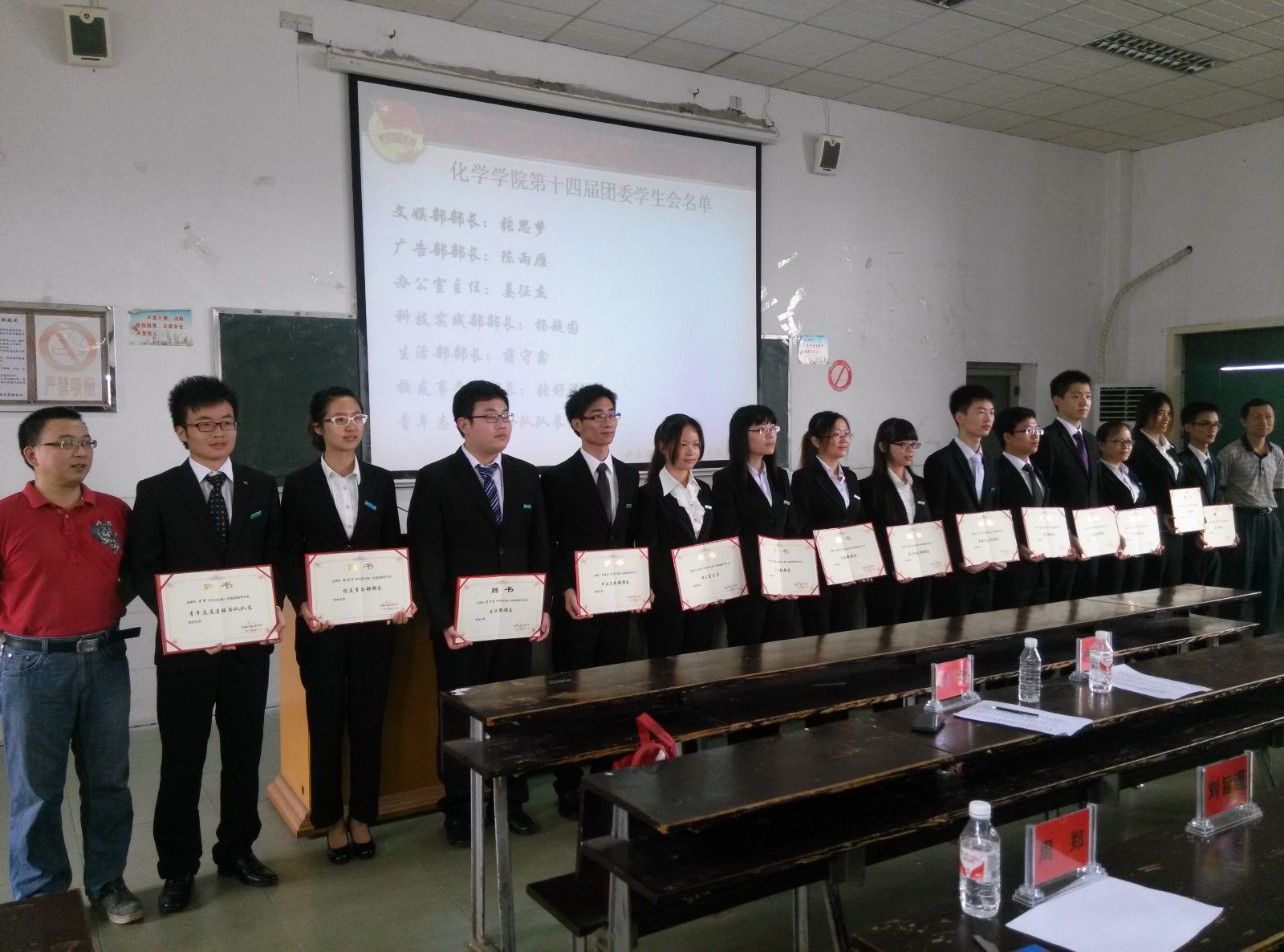 大会首先由周计老师介绍大会流程,全体起立,奏团歌。然后团委第一副书记王微学姐做工作总结,她在总结中提到自己在学生会完成了很多梦想,感谢学生会给予她这样一个展现自我的平台。随后进行了受聘仪式,受聘仪式结束后由第十四届团委学生会主席李伟健发言,他感谢了老师和前辈给予他这样的信任,他在发言中谈到了今后的工作方向与工作思想,并相信自己能带领大家把学生会办的更好。继李伟建发言之后,由第十三届团委学生会主席周郑发言,他首先感谢大家对他工作的支持,并对自己一年的工作做了简短的评价,最后他祝愿学生会能更加出彩,越走越远。最后卢其斌老师总结大会,他感谢学生会的每一位成员,感谢他们让学生会有了今天的成就,并祝愿学生会在今后的表现中更加优秀。大会结束,学生会全体成员在图书馆门前合影留念。