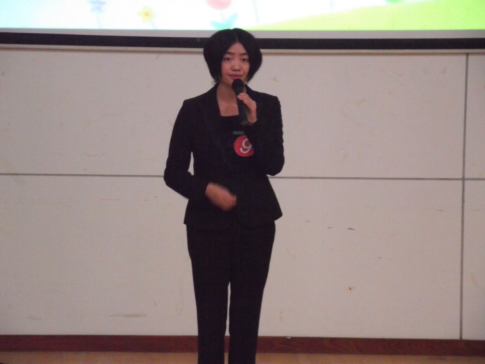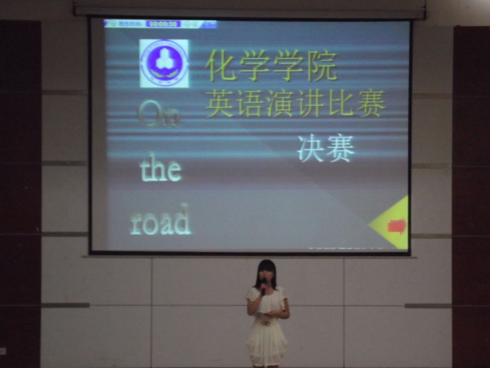 比赛正式开始。本次的演讲主题是“ON THE ROAD”。一号选手邢婷率先登场,在邢婷的自我介绍视频中我们可以看到她是一个开朗大方爱学习的女生。第二位上台的张亚军凭借流利上口的英语获得大众评审团18票的高分投票。台上一分钟,台下十年功。张亚军在台下充足的准备让他在大场面上表现得镇定自若,不失本色。经过前五位选手的精彩演讲,为缓解会场紧张气氛,刘芳带领大家进行现场互动。通过简单的问答检验大家是否有认真观看演讲,同时也给后面上台的选手一定的缓冲时间,减轻选手们的心理压力。短暂的互动环节过后,比赛继续。面对如此紧张的比赛氛围,有些选手难免会忘词,但观众们都毫不吝啬的给予选手们掌声以鼓励他们。来自13级化学一班的9号选手魏雪,一上台就气呑虹霓,轻松将整个会场“hold”住,观众们热烈的掌声也淹没不了魏雪洪亮的嗓音,她自信的面容令许多选手们自愧不如。在3分钟的主题演讲里,魏雪将自己的英语演讲口才发挥得淋漓尽致,无论在哪个方面魏雪都是更胜一筹。随着10号选手别琼的演讲结束,本次活动的比赛环节告一段落。