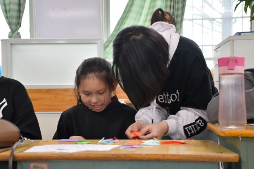 志愿者们结合视频,现场操作给孩子们讲解化学小实验,在手工课上,一对一、手把手教孩子们做最爱的棒棒糖和爱心,让孩子感受到快乐和兴趣......