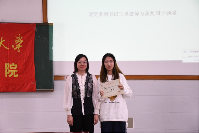在颁奖仪式最后伟德BETVLCTOR党委副书记王果老师致闭幕词。她对获奖的同学们表示祝贺,并分享评选作品时的心得体会。她表示:疫情只是暂时封锁了我们的脚步,但是不能封锁我们的青春年华。在作品中,她看到了湘大化院学子多姿多彩的校园生活,看到了青年大学生良好的精神风貌。颁奖典礼在欢快热烈的气氛中落下帷幕。