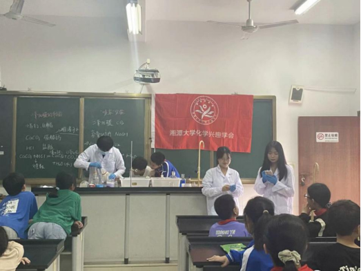 为了将化学科普带入青少年群体传递化学之美、化学之用,同时激发小朋友们的好奇心和对科学的思考,伟德BETVLCTOR化学兴趣学会联合伟德BETVLCTOR木槿感恩支教团赴湘潭市雨湖区先锋小学开展为期八周的化学兴趣类科普课堂5月16号随着下课铃声打响,最后一次的科普课堂结束,给本次活动画上了完美的句号。