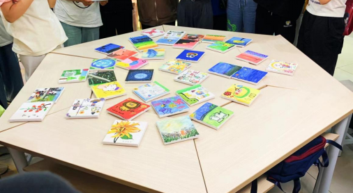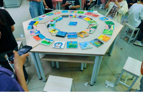 活动尾声,同学们还积极分享自己的创作历程和画作故事,勇敢积极表达自己内心的喜悦或迷茫,“绘画的过程让我整个人很放松,而且我的这幅画是根据抽取心情盲盒进行创作的,也希望写下这份心情的主人看到我的作品会开心。”现场一位同学分享道。