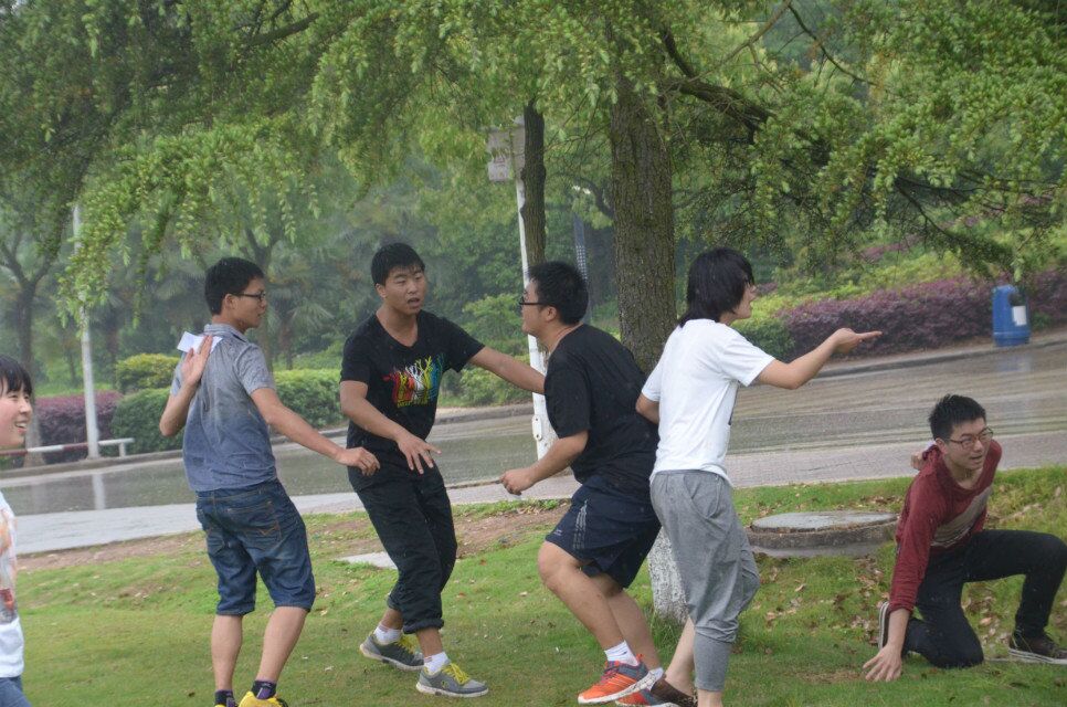 第二项为接歌比赛。同学们分成两大阵营,进行接歌,经过激烈的比拼,一方胜出,获胜方得到精美小礼品一份。第三项为小游戏。对赢的人实行奖励,输的人进行惩罚,欢笑声充满了整个教室。之后同学们前往泽园进行撕名牌。虽然下了雨,可是同学们的热情也并未减弱,大家你追我赶,毫不示弱,甚是欢乐。