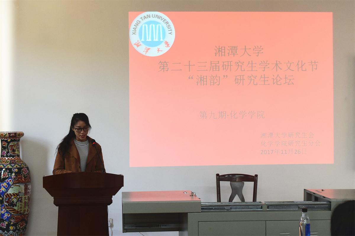 11月26日下午,伟德BETVLCTOR第二十三届研究生学术文化节第九期“湘韵”研究生论坛在化学化工大楼A417成功举办。此次论坛由伟德BETVLCTOR研究生分会承办,由分会学术部部长肖韶妃主持,伟德BETVLCTOR相关专业研究生参加论坛。