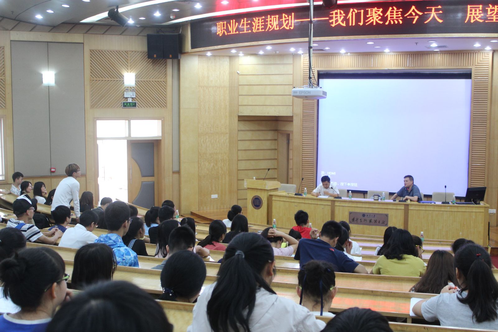 杨先生使大家知道职业生涯规划可以让大家的生活更有奔头。但在职业生涯规划时要注意考虑时间段及自己资源。同时,杨先生在怎么进行职业生涯规划的讲解中给大家带来了社会人口分布、日本企业,韩国企业,欧美企业,国企及民企的特点、企业喜欢什么样的员工及自己怎么选择企业的知识。这次讲座给长期在学校的学生带来了不一样的认识。(图:刘洋坪)