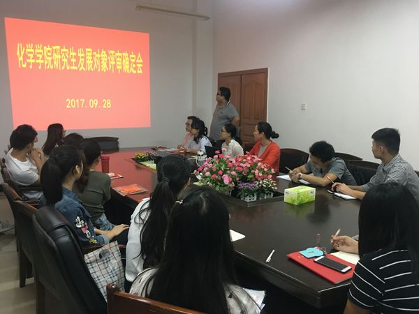9月28日下午,2017年下学期研究生发展对象评审确定会在A415召开。院党委副书记肖妮出席了会议,研究生党支部书记、各支部推荐的拟发展对象参会,学院专职组织员秦治军主持会议。