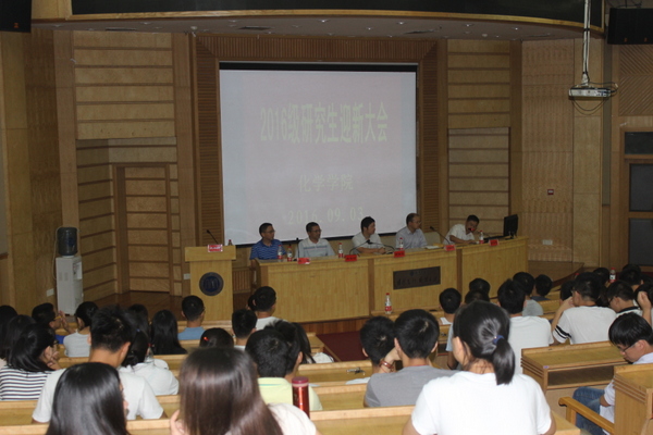 9月3日晚,图书馆一报告厅热情洋溢,化学院2016级研究生迎新大会在这里隆重举行。全体2016级博士、硕士研究生新生参加迎新大会。伟德BETVLCTOR科技处处长费俊杰教授、伟德BETVLCTOR院领导、新生班主任、各学位点负责人、研究生思政办公室老师出席会议。