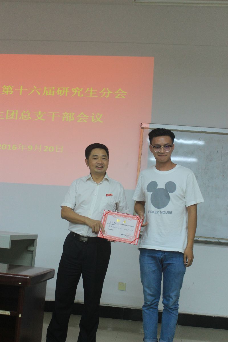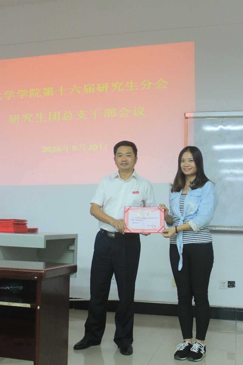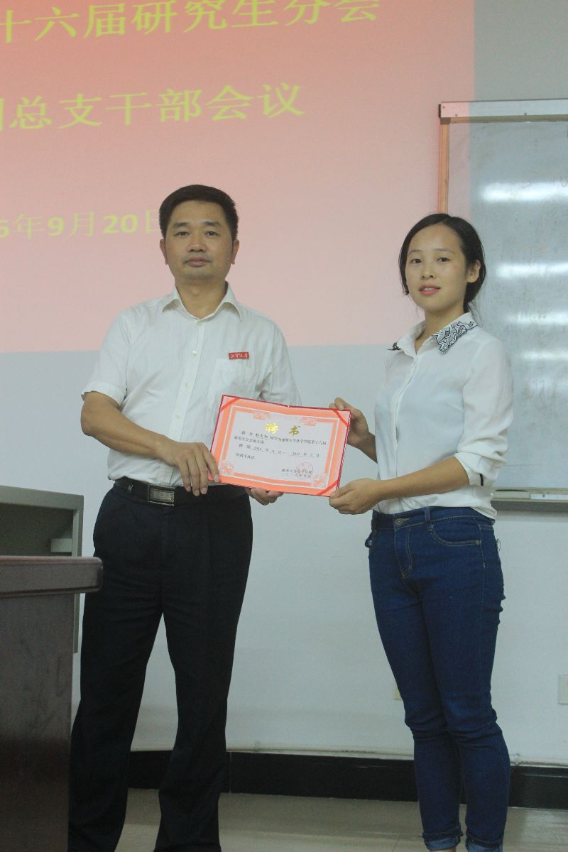14届、15届研究生分会主席彭文红、周黄山先后发言,介绍了自己开展学生工作的经验,强调学生工作与科研工作两方面的合理规划的重要性。16届研究生分会主席王冰欣、团总支书记李静表达了自己对即将开始的工作的打算和信心。