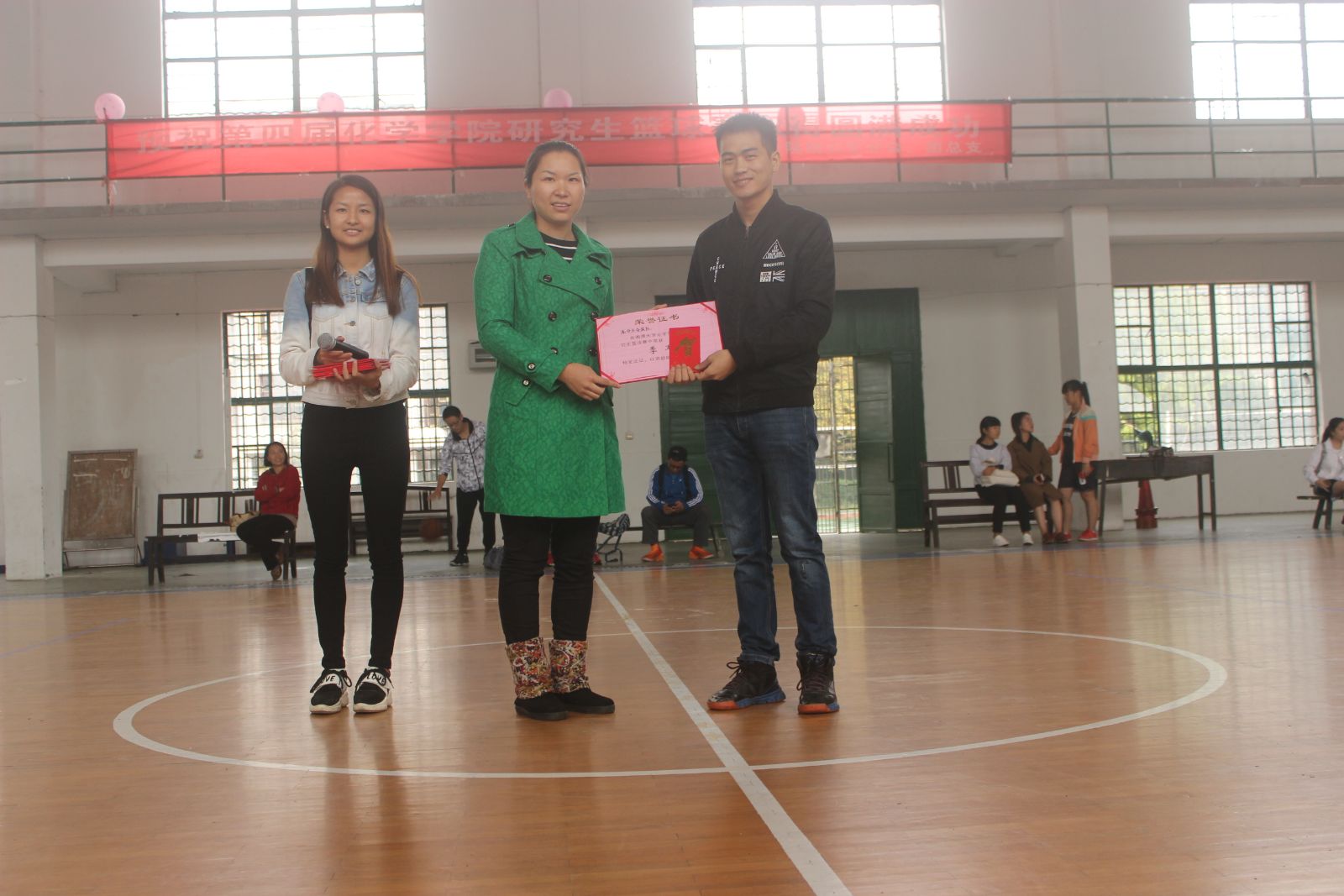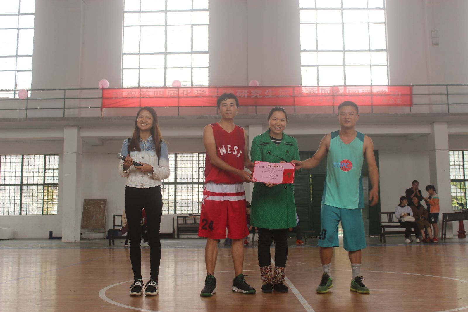 此外,高分子合成队以35:29的比分战胜材料工程队夺得季军。陈树清、贺泽跃夺得此届“兄弟杯”篮球赛MVP称号。秦治军老师分别为冠、亚、季军和MVP颁奖。(照片由刘洋坪提供)