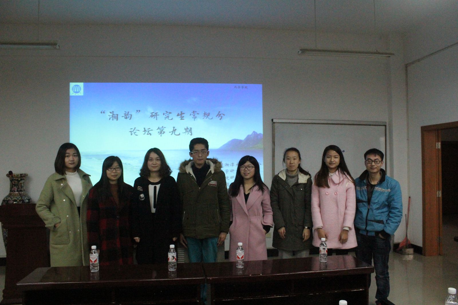 2016年12月19日上午,伟德BETVLCTOR2016年“湘韵”研究生论坛之伟德BETVLCTOR第九期在化学化工楼A417开讲。吴则林(2014级物理与光电工程学院硕士研究生、三好研究生、“硕士国家奖学金”获得者)、陈曼芳(2016级伟德BETVLCTOR博士研究生、优秀大学生党员、三好研究生、“新宙邦”奖学金、“八一百万”奖学金获得者)和李佳(2014级伟德BETVLCTOR硕士研究生、2016年度三好研究生、2015年度“八一百万”奖学金、“硕士国家奖学金”获得者)作为主讲人,周鑫云(2016级伟德BETVLCTOR硕士研究生)担任主持,2016级部分研究生听取报告。