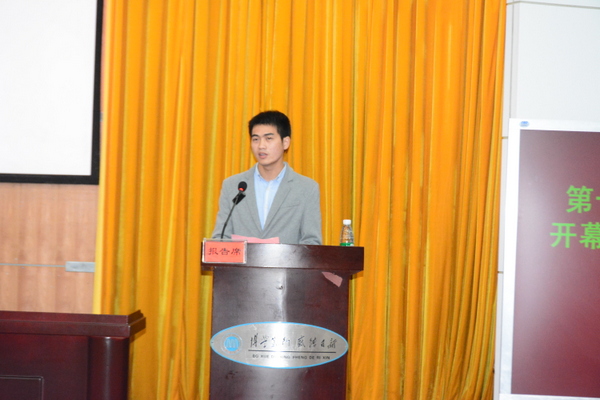 研究生分会主席周黄山介绍本次学术文化节的活动安排。本次学术文化节将举办名师论坛、研究生论坛、研究生学术成果展以及考博交流会等系列学术活动,以达到激扬学术,传承文化、学习交流的目的。