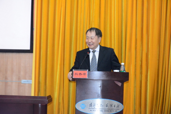 中国科学院李永舫院士作首次名家讲座,副校级督导员张海良教授主持名家讲座。(照片由张俊、孟稳提供)
