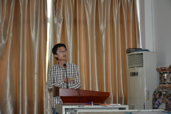 魏微以“直接硼氢化钠燃料电池阳极催化剂的研究”为题进行讲解,从研究背景、研究内容等方面介绍了碳载Au-Fe、Pt-Fe纳米催化剂的制备及其在DBHFC中的应用研究,以及这两种电极上BH4-的电催化氧化动力学特性研究。蔡进辉就题为“以肟酯为源料合成N-杂环化合物的研究”进行详细讲解,从有机合成方法学的角度介绍了自己所作的两个课题,并就实验优化部分和课题研究的经验与师弟师妹进行了交流。余睿智就题为“富锂正极材料Li1.5Mn0.75Ni0.25O2+δ的结构设计及掺杂改性”进行讲解,重点介绍了锂离子电池及其正极材料发展前景,分享了三种不同的富锂正极材料的制备和测试表征,并在讨论环节和大家探讨了读博和科研等方面的经验。(照片由鲁群提供)