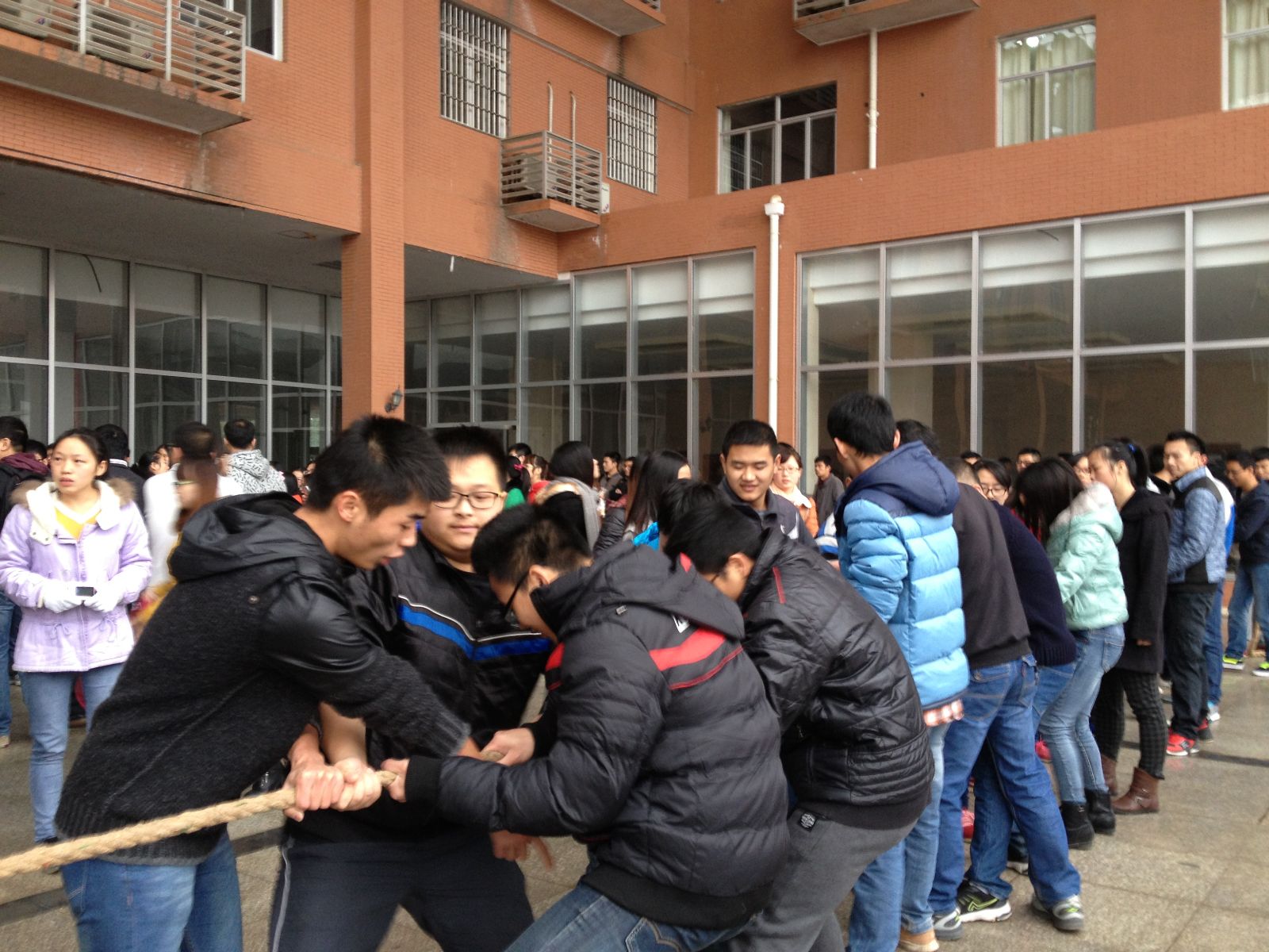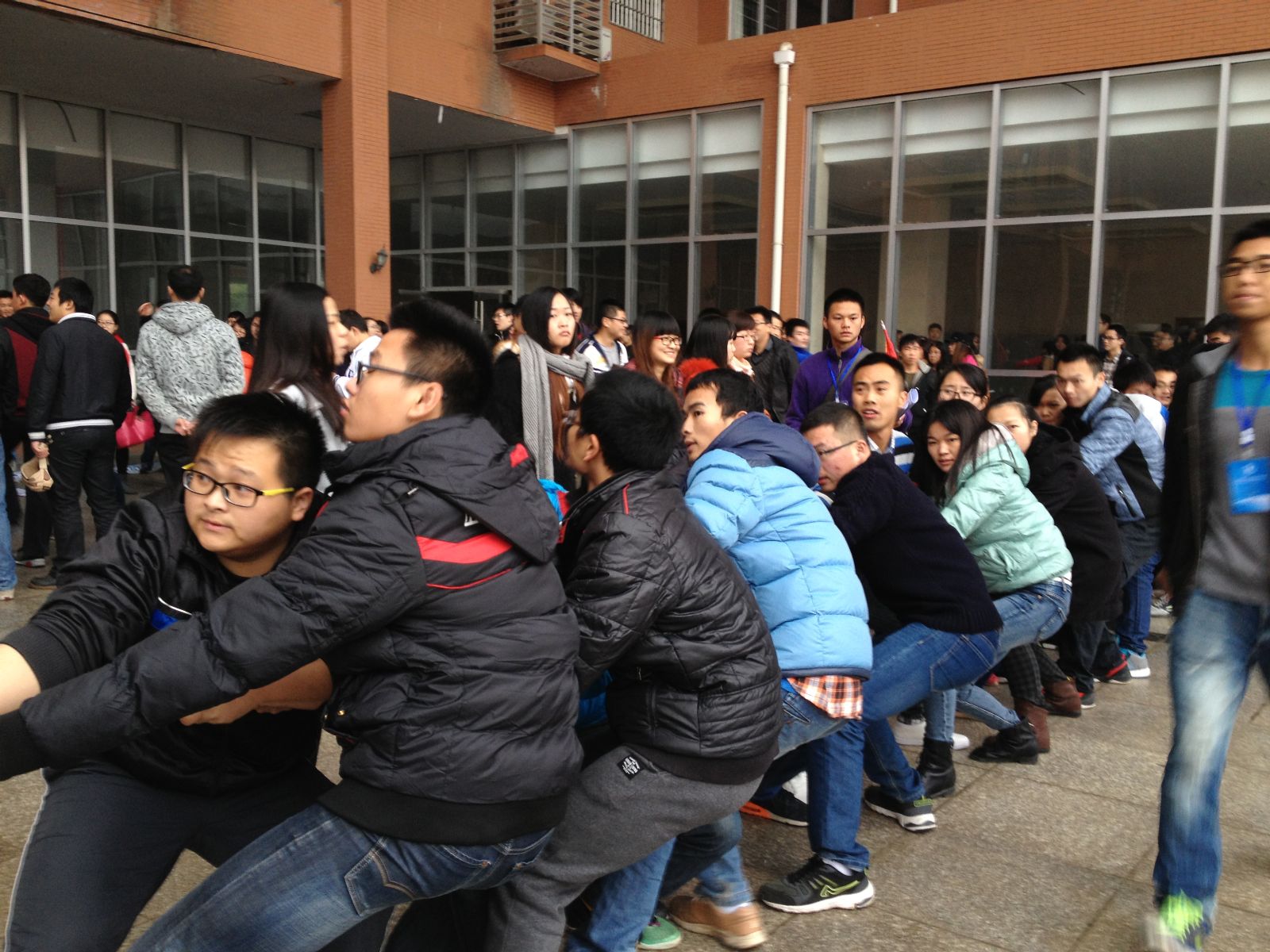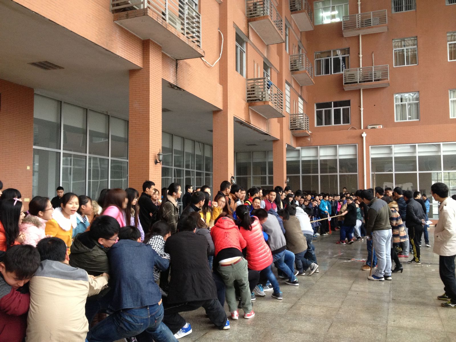 11月30日,星期日上午,“潇湘杯”拔河比赛在学生活动中心观景台如火如荼地进行。