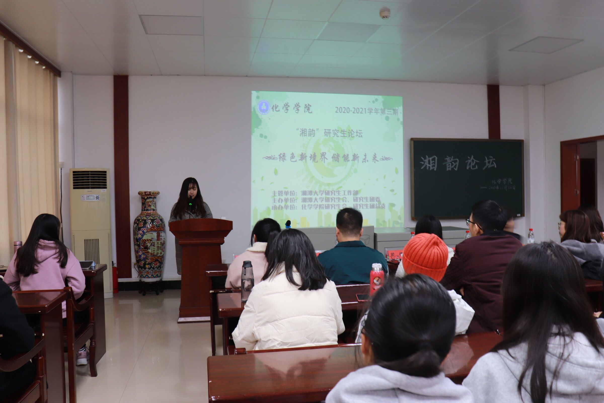 论坛由2020级分析化学专业廖沁婷同学主持,简要介绍了三位主讲人以及来自校研究生会的代表。校研究生会代表黄海璐致词:湘韵论坛是一次与优秀灵魂的交流与碰撞,每一次交流都会有不同的收获。我们要积极参与各种学术活动及非学术活动,来拓宽社交面,开阔眼界。希望在座的研究生学有所成,早出成果。活动中场休息时,主持人会问一些与生活中化学知识相关的选择题,谁最先抢答成功,就可以通过抽奖获得活动方提供的小奖品。