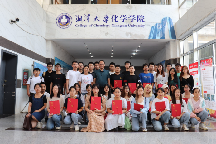 会议结束后,李涛书记、袁雪萍老师与第二十一届、二十二届研究生干部在化学化工大楼一楼大厅合影留念。