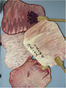 活动现场,工作人员精心准备了素白灯笼、竹制团扇、环保颜料及防护用具。在佘老师的指导下,同学们化身 “创意达人”,将化学元素融入传统工艺:有人用金粉勾勒出分子结构图案,绘制 “微观世界” 主题灯笼;有人以酸碱指示剂显色原理为灵感,在扇面创作渐变色彩画作。