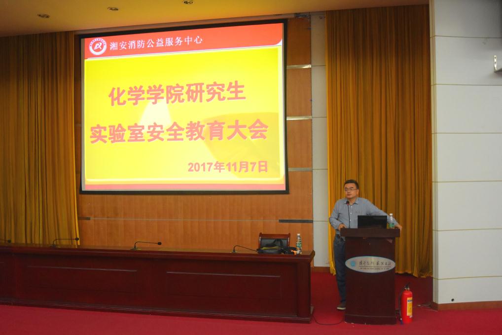 11月7日晚7点,在逸夫楼第一报告厅,伟德BETVLCTOR副院长张雪飞教授主持召开了实验室安全教育大会,并邀请了湘安消防公益服务中心李兵教官为伟德BETVLCTOR全体研究生和老师进行消防知识教育。