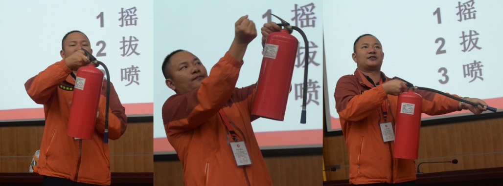 李兵教官严肃地谈起各种消防事故,用大量视频与图片资料向全体同学讲解消防事故的严重性以及提高消防意识的重要性,消防关键在防,提出“事故是最大的浪费,安全是最大的节约”,并且在现场亲自展示了消防工具的使用方法。李教官幽默而又认真的讲解,给同学们留下深刻印象,大家都情不自禁地为他的精彩讲解热烈鼓掌,同学们还纷纷提问,将自己的疑惑和想法与教官讨论。