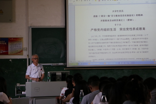 刘稳丰以《“两学一做”学习教育常态化制度化》为题,传达中共中央办公厅《关于推进“两学一做”学习教育常态化制度化的意见》文件精神,解说“两学一做”学习教育常态化制度化的重大意义、目标任务、基本要求、具体要求,布置学院推进推进“两学一做”学习教育常态化制度化的具体措施。