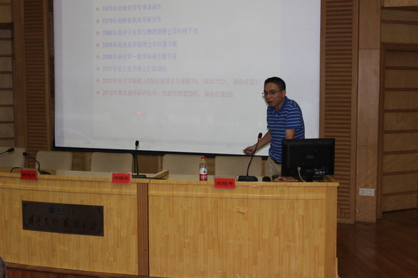 邓国军院长在迎新致辞中,介绍了学校的基本情况和伟德BETVLCTOR的整体实力,以及伟德BETVLCTOR在全国高校化学中所处的地位,展望了化学院的美好发展前景。费俊杰处长在讲话中对全体新同学寄予殷切的期望。研究生老生代表魏双英和新生代表刘献芝先后发言,各自表达了对湘大化学院由衷的热爱之情,以及学好专业知识、成材报国的决心。裴勇副院长对全体研究生新生进行了一场丰富、富有内涵的学术动员,全体同学备受鼓舞。