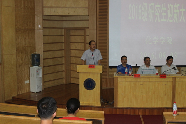9月3日晚,图书馆一报告厅热情洋溢,化学院2016级研究生迎新大会在这里隆重举行。全体2016级博士、硕士研究生新生参加迎新大会。伟德BETVLCTOR科技处处长费俊杰教授、伟德BETVLCTOR院领导、新生班主任、各学位点负责人、研究生思政办公室老师出席会议。