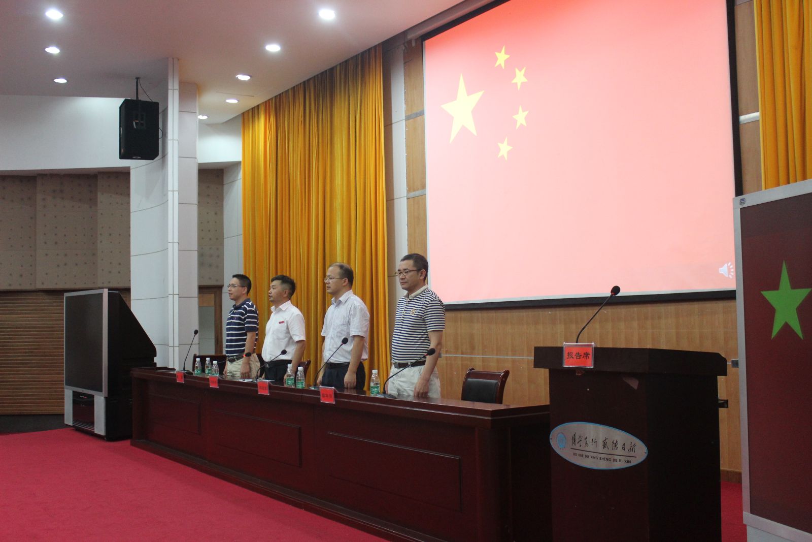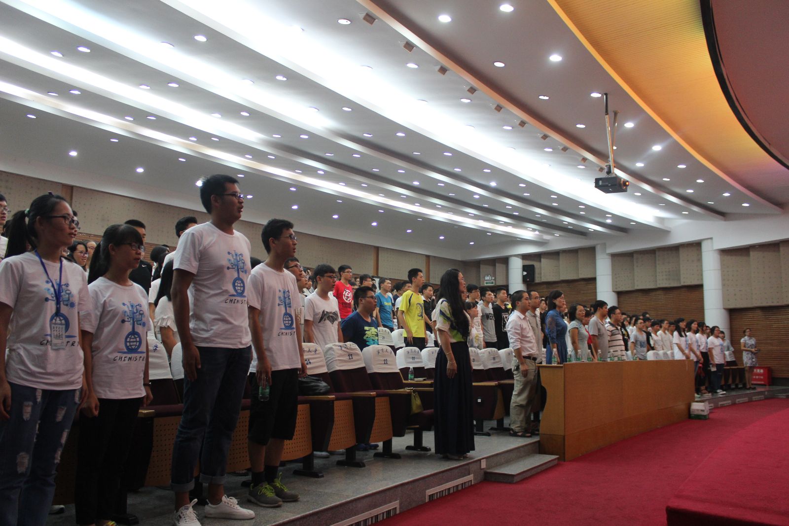 在国歌声中,全体起立,大会第一项展开。紧接着邓国军教授讲话,邓院长向新生简单介绍了伟德BETVLCTOR的情况,分别讲述了各个专业的优势及已经取得的成就,并告诫新生“千里之行始于足下”,希望同学们学习进步,生活愉快,心想事成。接下来老生代表2014级材料化学专业俞书洋以及新生代表应用化学专业马昕悦发言,老生回顾自己的大学生活,新生也展开自己的大学生活设想。黎华明副院长在学习动员中指出,大学生要注意把握方法、管理、孝顺三个关键词,方法就是积累和整洁切合自己的学习方法,管理就是要管住管好自己的时间,管住自己的习惯,孝顺就是顺从父母的心意希望,认真学习,成长成才。