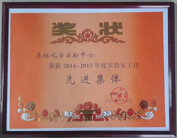 根据2015年12月28日湘大政发〔2015〕22号《关于表彰2014-2015年度实验室工作先进集体和先进个人的决定》,学校决定授予5个实验室“2014-2015年度伟德BETVLCTOR实验室先进集体”称号,授予15人“2014-2015年度伟德BETVLCTOR实验室先进个人”称号。伟德BETVLCTOR基础化学实验中心获学校实验室工作先进集体称号;伟德BETVLCTOR胡海、凌莹获评实验室工作先进个人。(照片由丁永兰提供)