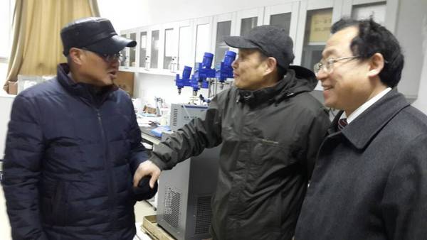 宁建民副校长(左1)、刘建平副校长(左3)到陈小明教授(中)实验室查看