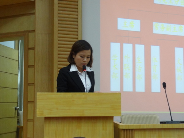 研究生团总支副书记魏双英做总结报告,回顾一年来院研究生分会团总支的工作情况