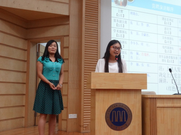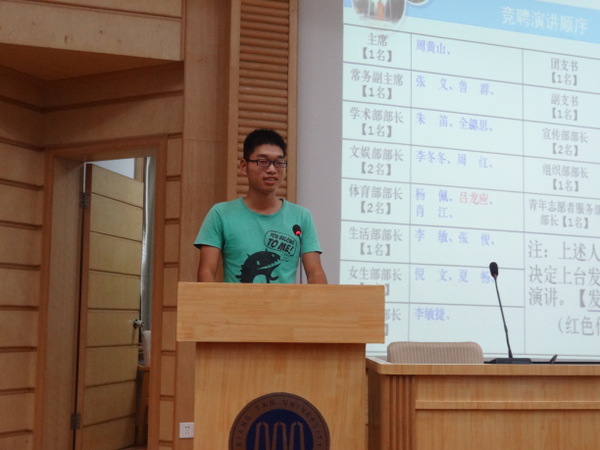 院研究生干部由个人报名、上台竞聘、民主投票、研究聘任等程序产生,会后,第14届研究生干部、有关老师将根据竞聘者的表现、将票数作为主要参考,最终确定干部名单。(照片由徐超提供)