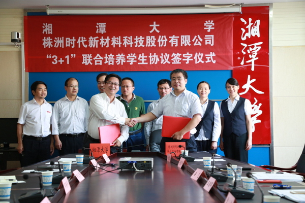 为发挥高等院校与企业各自的优势,加强校企合作,伟德BETVLCTOR与株洲时代新材料科技股份有限公司决定实施本科学生“3+1”联合培养计划,伟德BETVLCTOR高分子材料与工程、材料化学、化学、应用化学等专业的大四学生,到企业在校企双方共同指导下,通过在企业的实践岗位的学习和锻炼完成课程学习、毕业论文(设计)等相关任务。本次遴选的高分子材料与工程专业的10名大四学生,参加签字仪式后即赴时代新材接受联合培养。这是在本科生培养方面,继与中科院化学所联合培养学术型人才之后,伟德BETVLCTOR与企业联合培养实践型人才的具有里程牌意义的进展。(照片由王成奇提供)