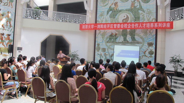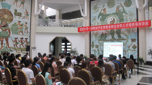 2015年7月13-17日伟德BETVLCTOR-浏阳经开区管委会校企合作人才培养系列讲座在浏阳经济开发区科技医药文化馆开讲。伟德BETVLCTOR雷钢铁、彭圣明、李娟、祝丽萍等老师参加系列讲座,2012级药学专业学生聆听系列讲座。